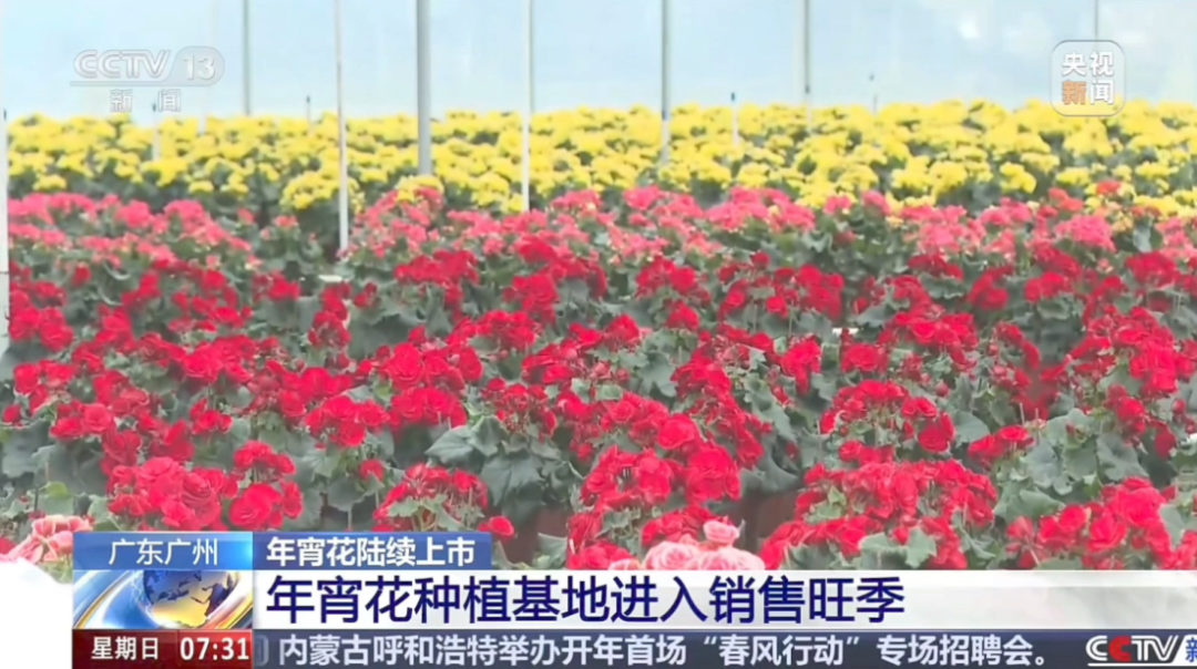 🌟2025年1月16日,央视《新闻联播》在《各地年货市集购销两旺》报谈中,初度将镜头瞄准中新镇五联村佳信园艺花草栽植基地,记载下增城花草产业欢迎销售旺季的吃力场景。