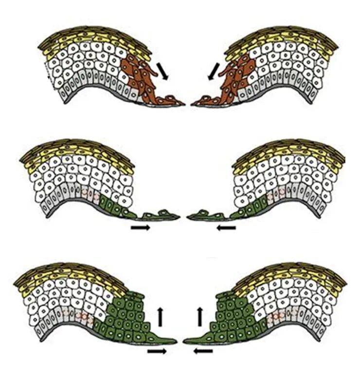 △伤口再上皮化的暗示图:箭头傲气的是上皮滋长的处所