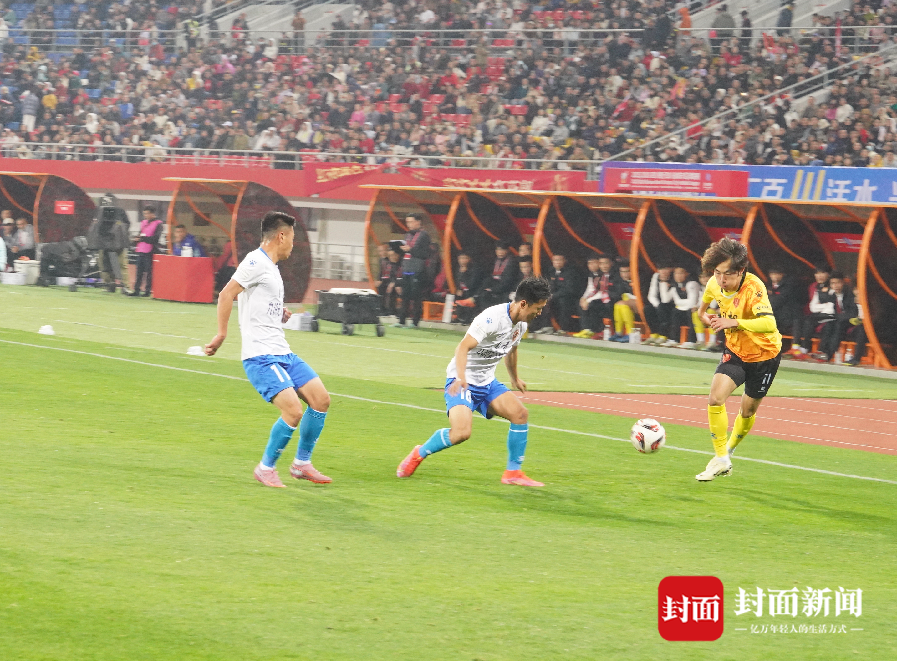 比赛运行,成齐队就对自贡的防地施加压力,自贡队长杨航为首的防地力保通顺战中球门不失。比赛进行到第23分钟,成齐队取得前场恣意球契机,45号陈宏强操刀主罚,皮球直挂球门死角,成齐队取得1-0向上。陈宏强与队友作念出了打游戏机的动作庆祝进球,问候已故的葡萄牙边锋迪奥戈·若塔。