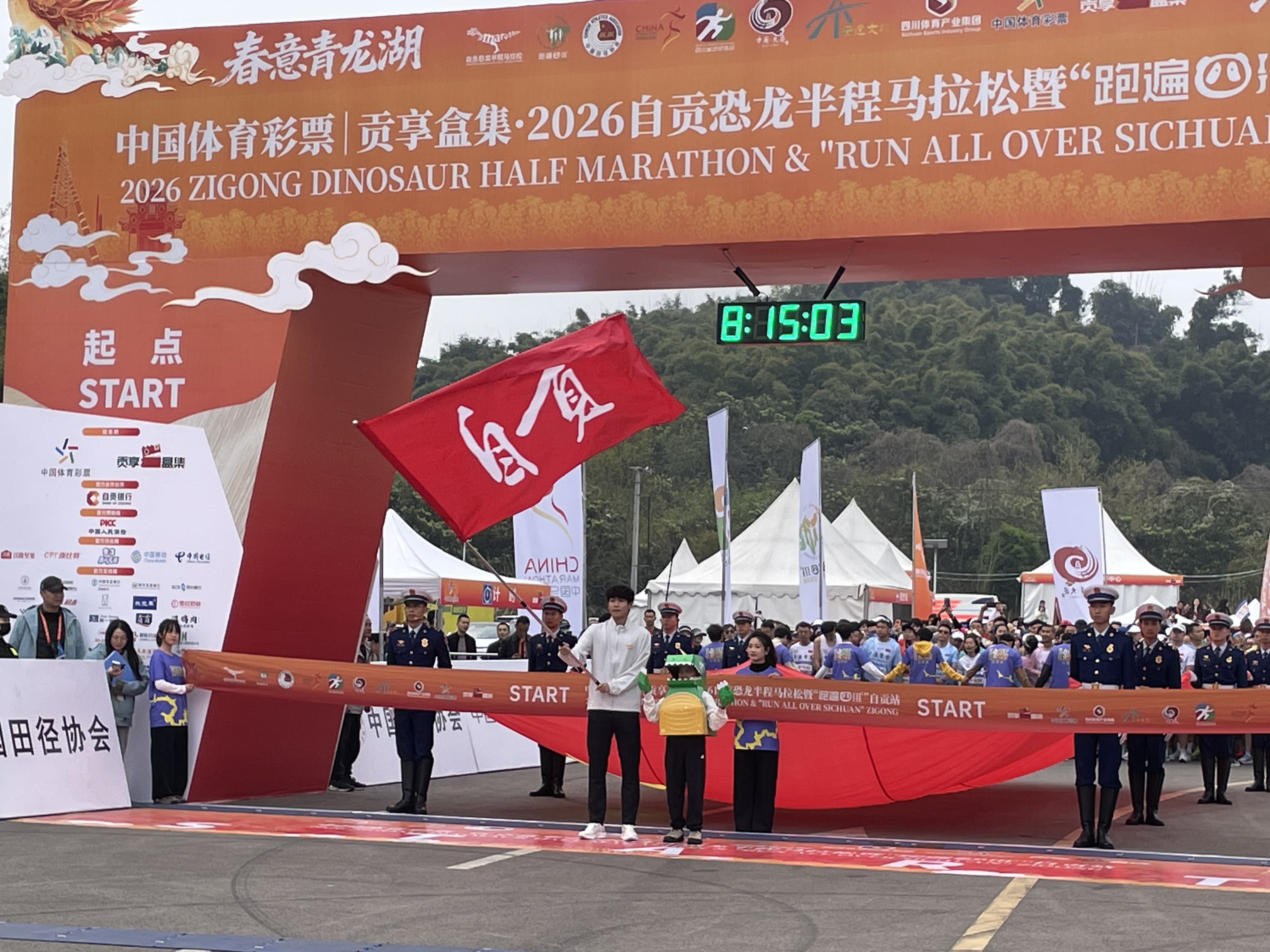 封面新闻记者刘恪生 3月22日8时30分,中国体育彩票|贡享盒集·2026自贡恐龙半程马拉松暨“跑遍四川”自贡站,在自贡市大安区青龙湖鸣枪开赛。本届赛事蛊惑了寰宇6000名跑者皆聚自贡大安,在春日的青龙湖畔开启一场充满活力的驰驱嘉会。封面新闻进行了直播,全网觉得154.8万网友不雅看了赛事盛况。 起跑庆典现场 名将助阵 三位自贡体育名将为驰驱代“盐” 本次赛事,特殊邀请三位自贡体育名将倾情助阵——川超联赛自贡灯城燊龙队队长朱涛先生担任赛事代言东说念主,自贡籍田径名将吴艳妮女士担任赛事推选官,自...