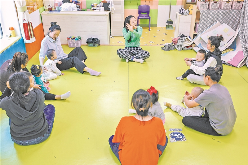 1岁至3岁小一又友在家长追随下进行听力早期干涉亲子课程。 新华社记者 许畅摄
