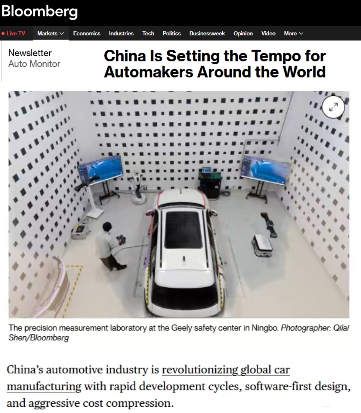彭博社近日刊文称,几十年来,汽车制造商一直以德国工程技巧、底特律的领域效应或日本车的可靠性为标杆来揣度自己。如今,他们的眼神投向了中国,因为中国的企业正以快速建树周期、软件优先筹备及资本显赫贬低,重塑全球汽车制造业时势。 彭博社报谈截图ag手机网页版 著作以为,“中国速率”已成为全球汽车行业的新标杆。比如,中国车企正在改写行业律例:更短的建树周期、深度整合的供应链、斗胆的改动理念,以及通过“空中下载技巧”(OTA)达成汽车功能的及时更新。传统汽车制造商,尤其是欧洲车企,正将合营视为追逐中国车企...