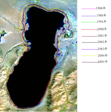 这是巴木错湖泊1980年至2005年水面面积遥感动态变化监测图。(受访单元供图)
