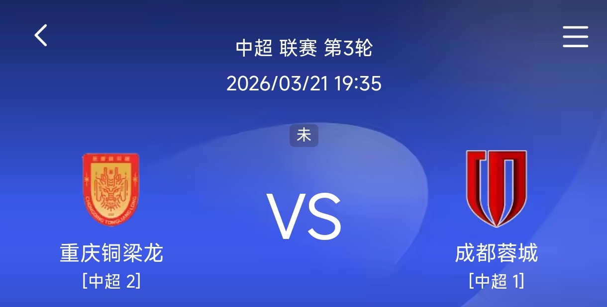 2026赛季中超第三轮的一场焦点战——成渝德比,将于3月21日晚打响,重庆铜梁龙在龙兴主场迎战成王人蓉城。