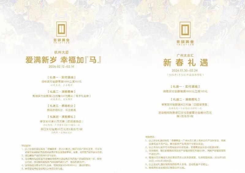 据机构预测,仅在北京SKP,老铺黄金就完了全年30亿的销售,在云集了100多家外洋大牌的这家“全球店王”,事迹占到1/7。另外如广州太古汇、杭州大厦的老铺门店则举办每满1000元立减100元上不封顶步履,重迭满赠礼券、金币等步履,扣头力度亦大于9折。
