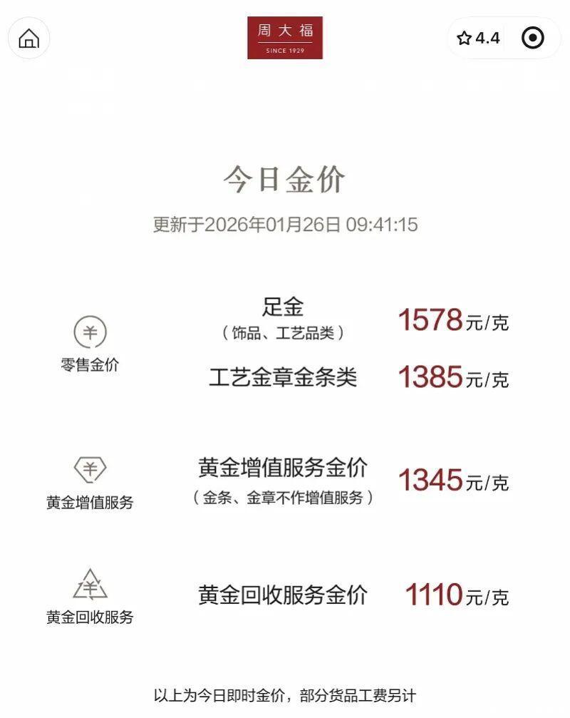 本文自南皆N视频APP·政商数据,记者王欣。 1月26日,现货黄金和期货黄金容日创下新高:现货黄金价钱冲破每盎司5100好意思元,日内涨幅冲破2.29%;同日,纽约期货金价触达每盎司5130好意思元,日内涨2.26%。 受外洋金价影响,国内金价相通大幅飞腾。本年以来,上海黄金来回所现货黄金价钱屡次创下新高,品牌金店的足金饰品报价冲破每克1500元:1月26日,周大福金价达到1578元/克,老凤祥和老庙黄金离别为1575元/克、1576元/克,其他闻明金铺品牌亦纷纷冲破1536元的克价。 1月2...