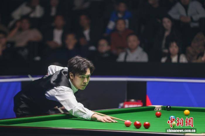 图为3月22日,江西玉山县,滚球(中国)app官网2026斯诺克寰宇公开赛冠军塔猜亚·乌努在决赛比赛中。刘力鑫 摄